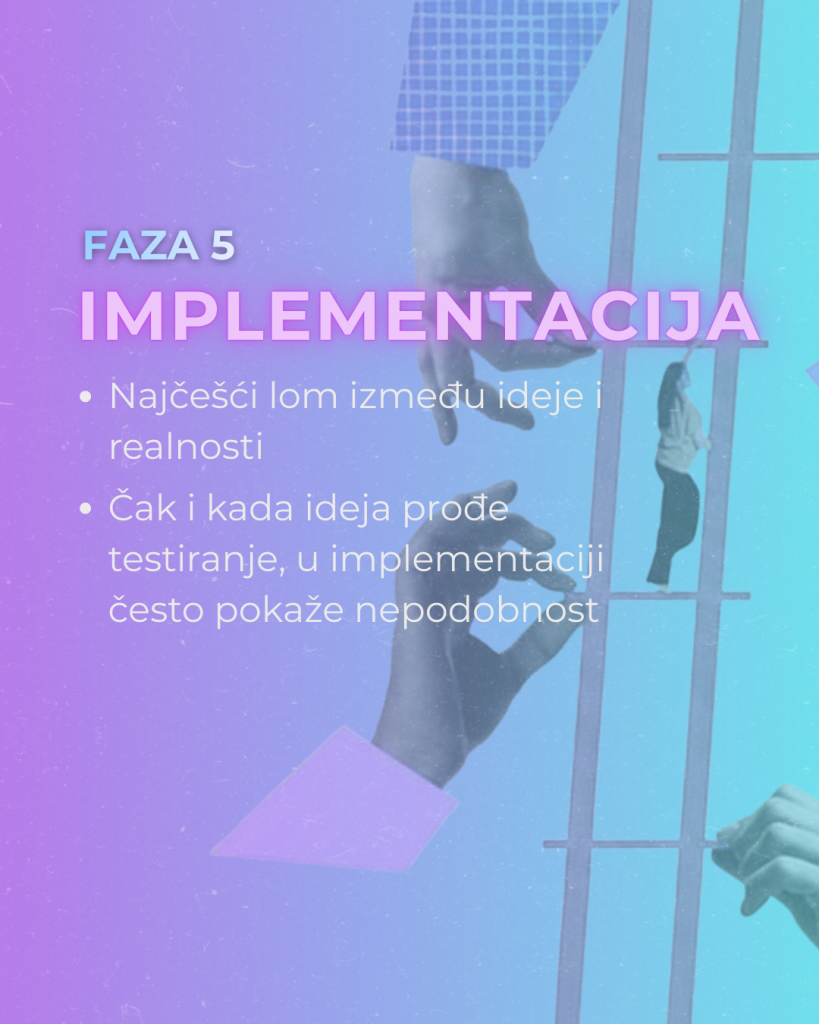 Dešava se i da ideja prođe testiranje, ali padne upravo u fazi implementacije – tamo gde se sudara sa budžetom, rokovima, sistemom, strahovima ili nerazumevanjem. I tada dolazi do trenutka koji se retko imenuje: trenutka u kome motivacija opada jer sistem ne prepoznaje vrednost procesa.