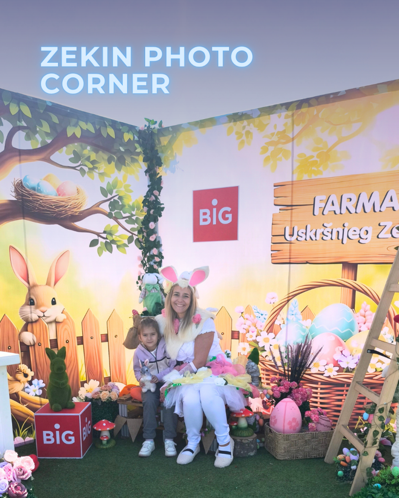 Kroz aktivaciju „Farma uskršnjeg zeke“, mališani su postali pravi mali pomagači i učestvovali u razigranoj uskršnjoj priči koju smo osmislili posebno za ovu priliku. Sa osmesima na licima i energijom koja se širila celim centrom, deca su zakoračila u svet Uskršnjeg Farmera i Zečice Radosnice, gde je svaka aktivnost bila nova mala avantura.