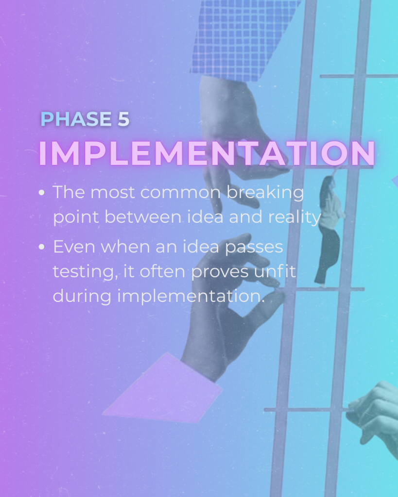 Sometimes an idea passes testing, only to fail at the implementation stage — where it collides with budgets, deadlines, systems, fears, or a lack of understanding.